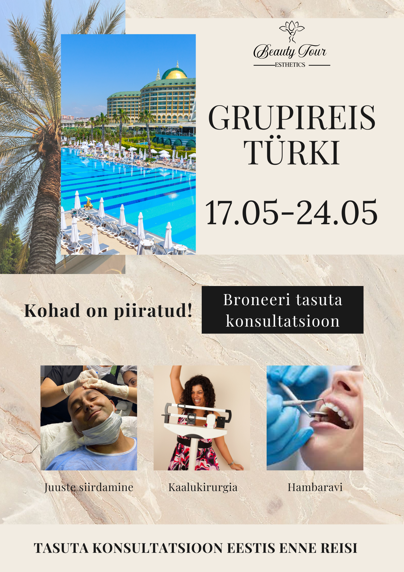 BeautyTour aitab sul teha läbimõeldud otsuse ning korraldab kõik sammud kindlalt ja turvaliselt.